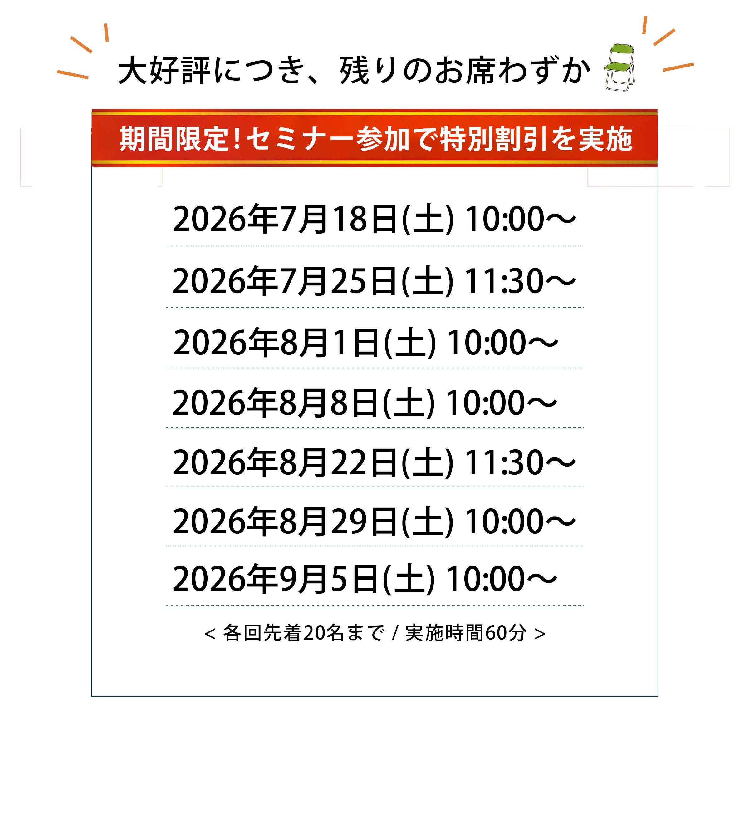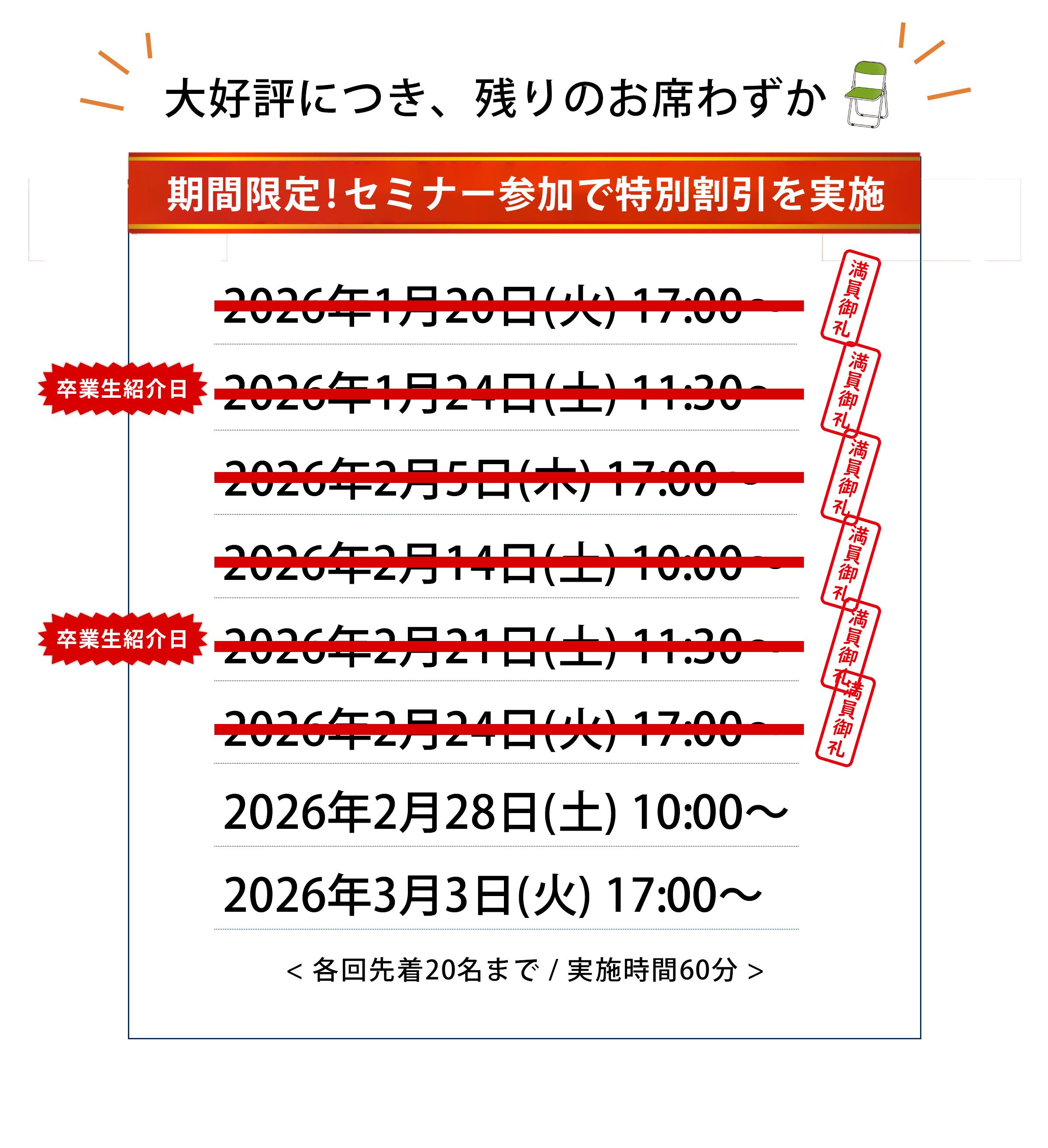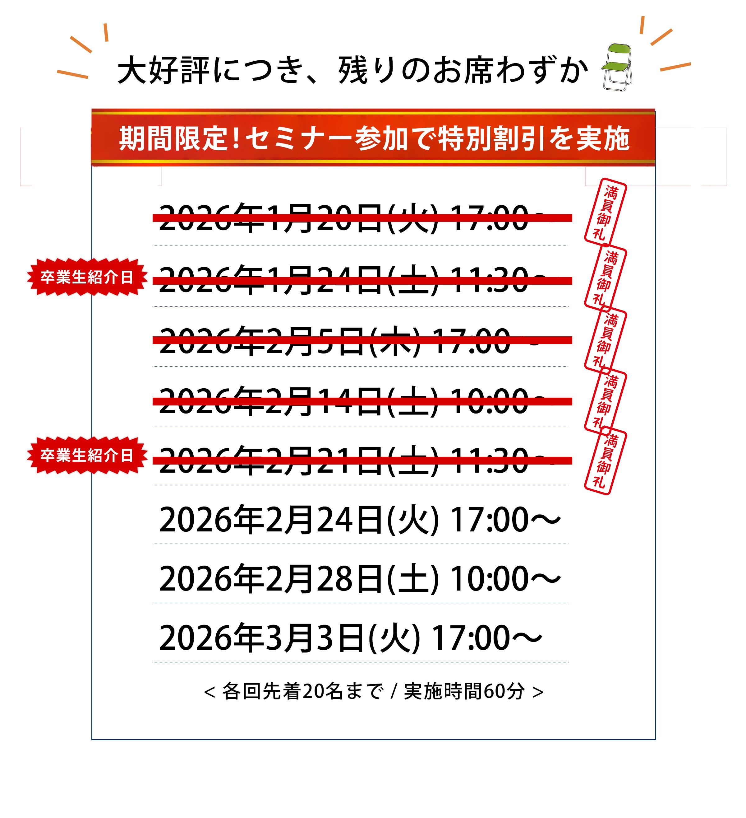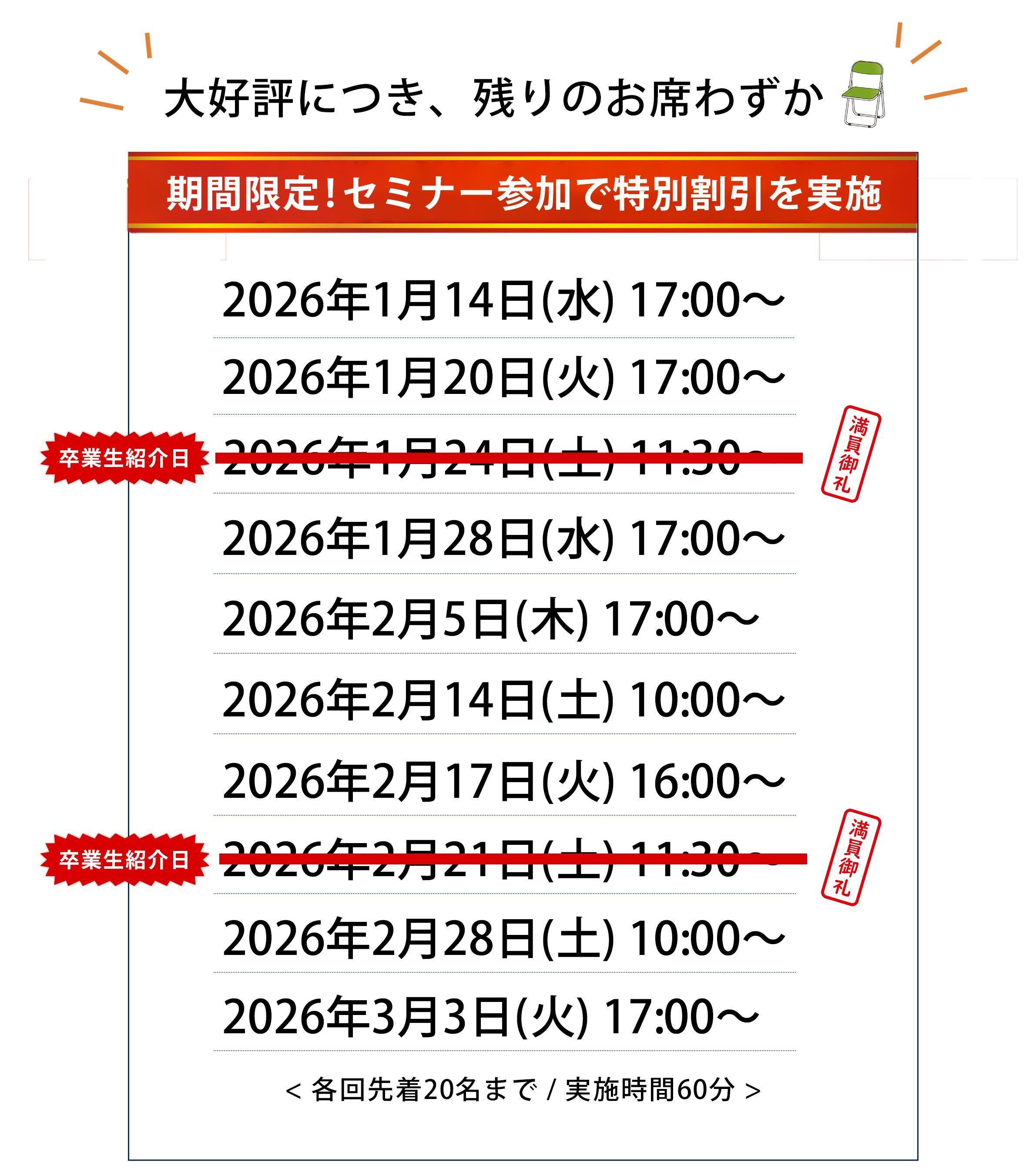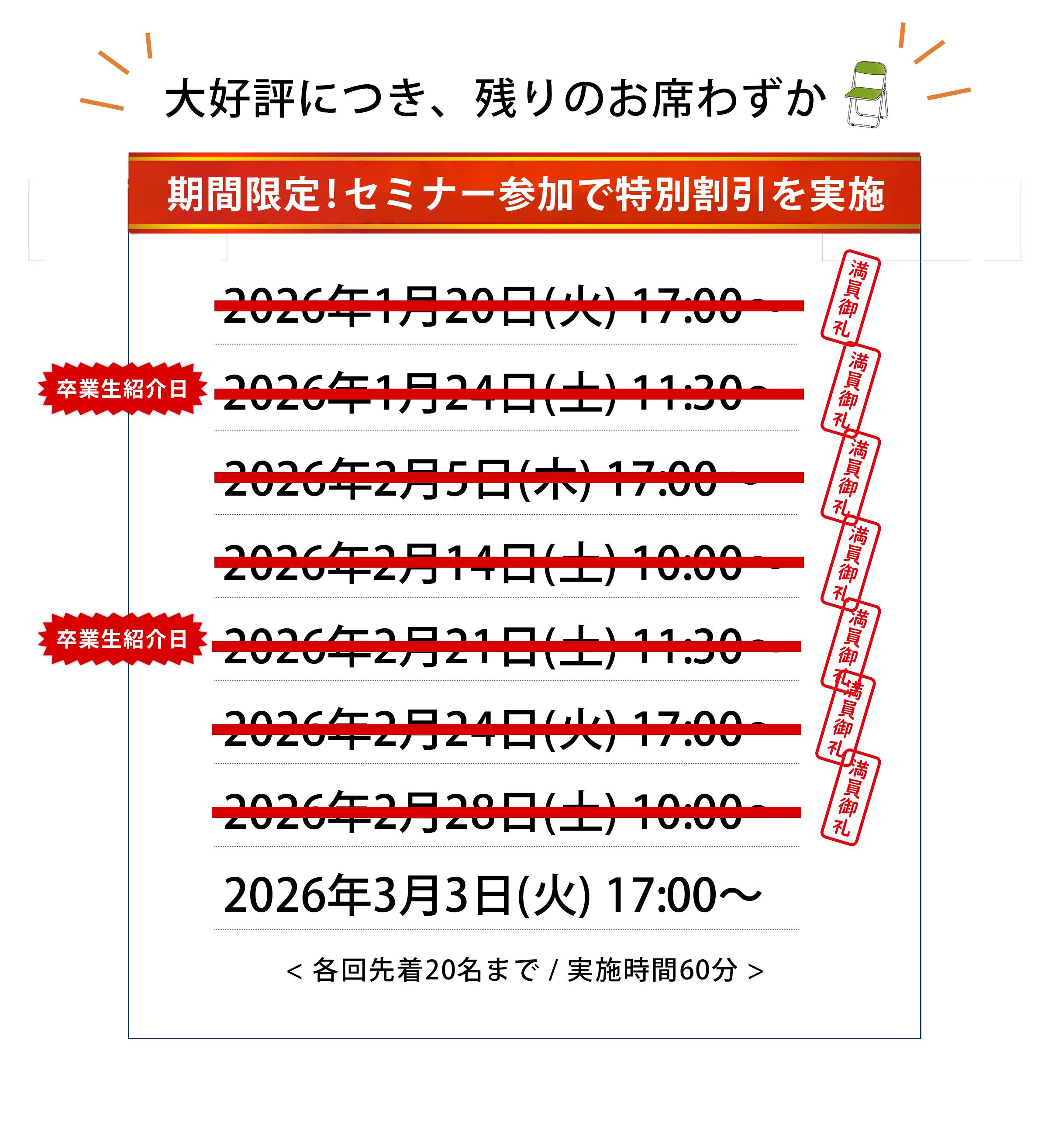 ※無料セミナー参加者のみ本講座の半額受講が可能です。